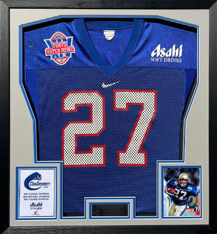 customer voice 今回、兄弟二人で同じ背番号をつけてプレーしてきたアメフトを額装にしていただきました。